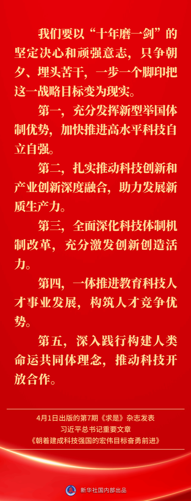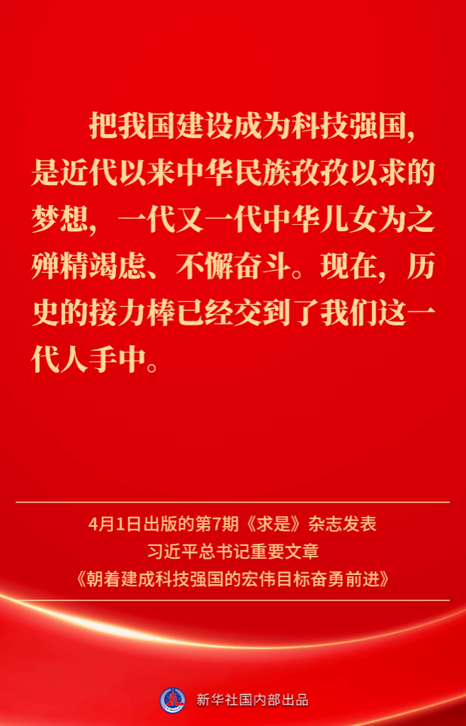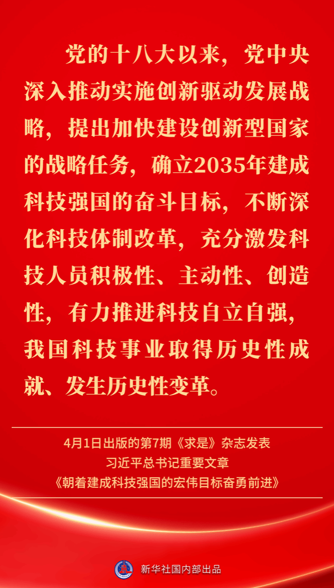 4月1日出版的第7期《求是》杂志发表习近平总书记重要文章《朝着建成科技强国的宏伟目标奋勇前进》。如何一步一个脚印把建成科技强国的战略目标变为现实?习近平总书记这样指引方向——