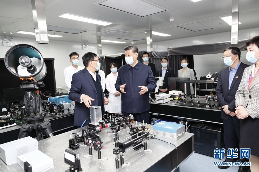 4月19日,在清华大学建校110周年校庆日即将来临之际,中共中央总书记、国家主席、中央军委主席习近平来到清华大学考察。这是习近平在清华大学成像与智能技术实验室同师生们亲切交谈。新华社记者 黄敬文 摄
