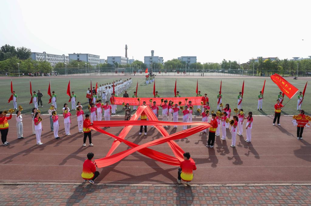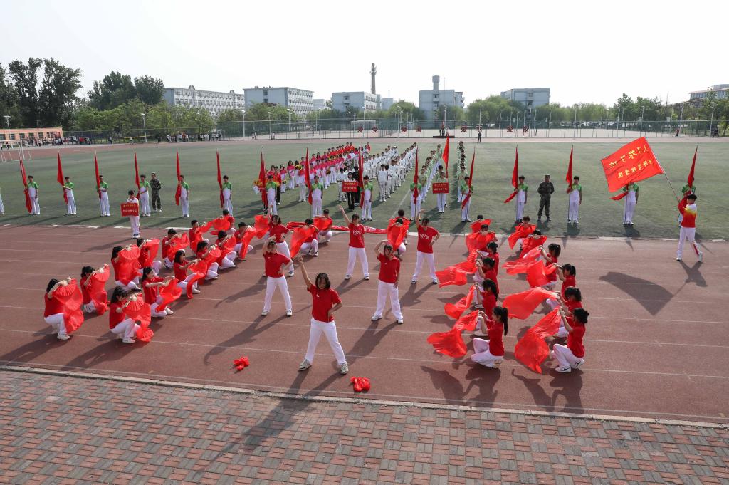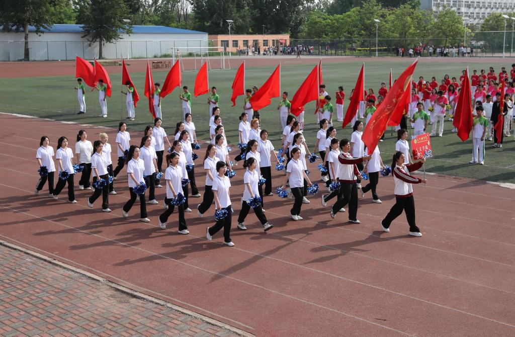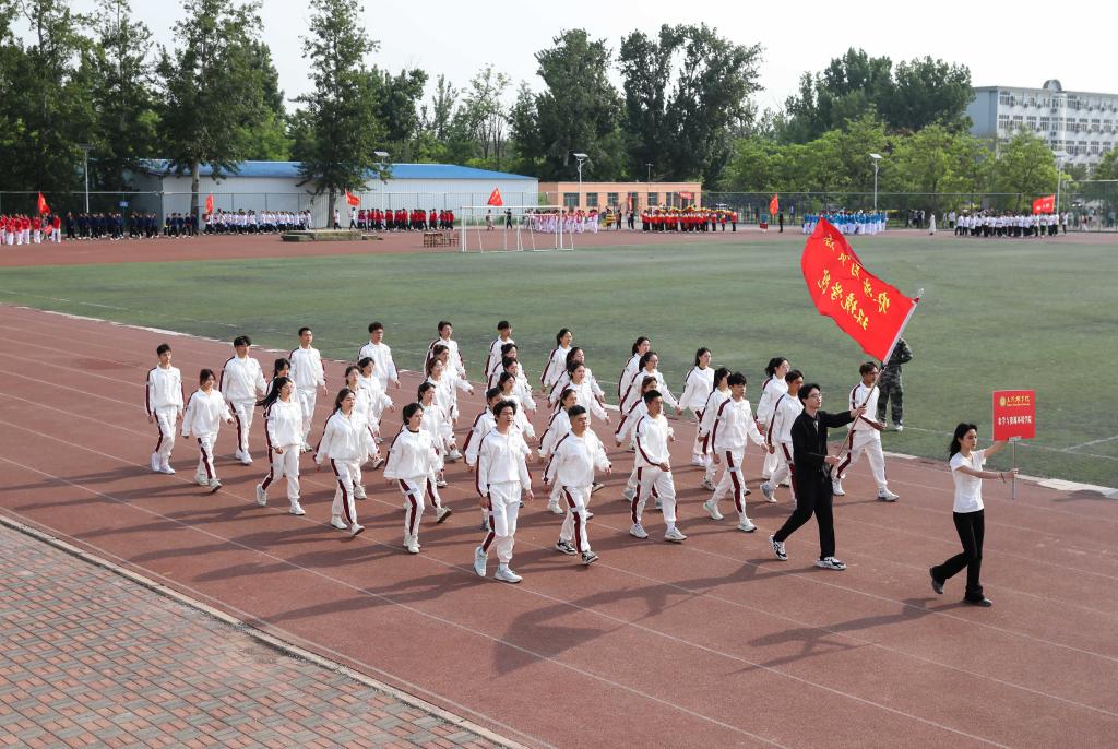在庄严雄壮的国歌声中,鲜艳夺目的五星红旗冉冉升起,我校第二十届春季田径运动会拉开序幕。