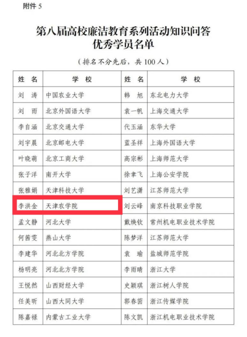 近日,教育部以“廉洁润初心 铸魂担使命”为主题举办了第八届高校廉洁教育系列活动,公布了100名知识问答优秀学员名单,我校经济管理学院2021级会计专业学生李洪金位列其中。