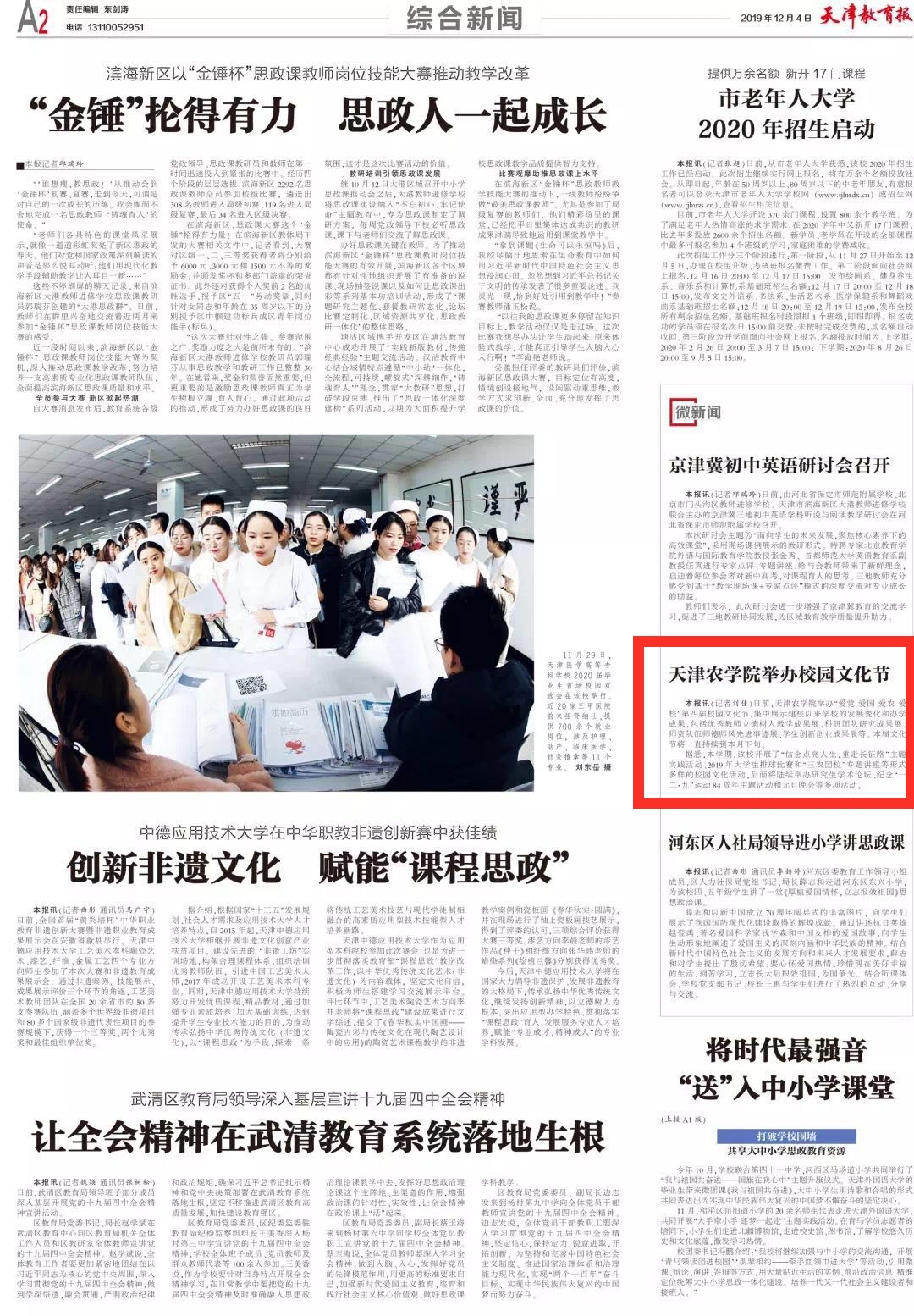 《天津教育报》报道我校校园文化节情况