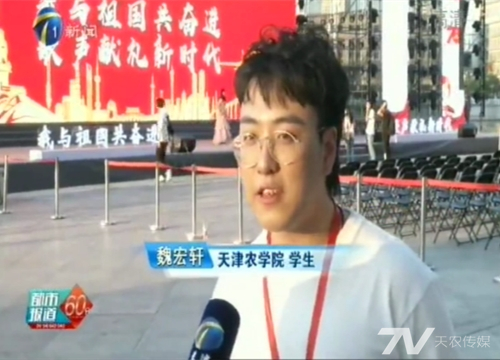 演出前,我校大学生艺术团魏宏轩同学接受了采访。演出后,他进一步表示,参加此次活动非常有光荣感与使命感,在学校广泛开展“爱党、爱国、爱农、爱校”教育下,我们要在今后的学习生活中严格要求自己,将个人理想与国家前途紧密联系,立志做知农爱农新型人才,为实现中华民族伟大复兴的中国梦作出自己的贡献。(文字:学工部 韩兰贞、食品学院 姚迪、学工部 李爱菁;摄影:陈卫东 祁昱 周潇吕 泽霖)