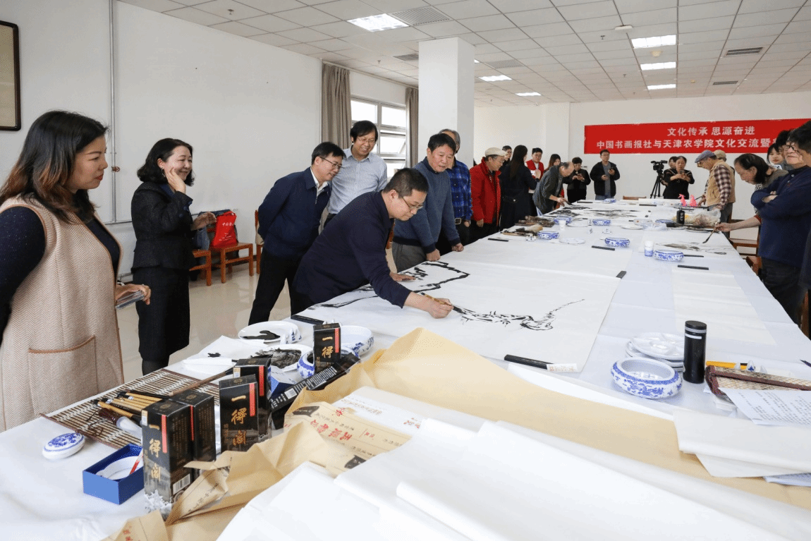 近日,中国书画报社应邀来到我校开展文化交流活动,我校师生代表和部分离退休老同志与来自天津美术学院的专家教授共聚一堂,大家以笔会的形式交流感悟中华优秀传统文化的魅力。