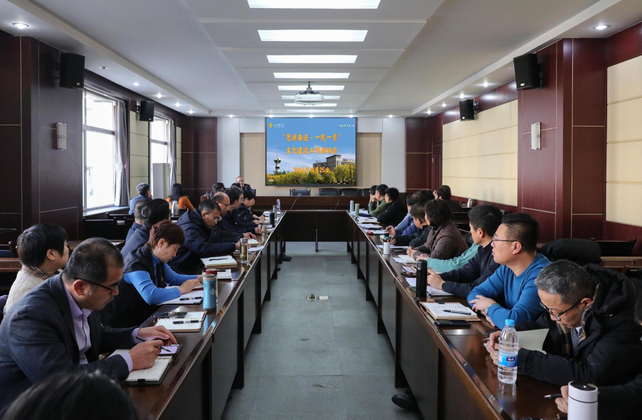 宋涛说,在学校党委、行政高度重视和领导下,在师生共同参与下,我校形成了学校“思源·奋进”文化、学院“思源奋进·一院一景”文化建设格局。各学院要以此为契机,注重领导,加强资源整合,统筹谋划好学院特色文化,注重凝练丰富体现学院特色的文化内涵。要广泛覆盖到学院党建、思政教育、学科建设、科学研究、社会服务等各方面工作,组织最广大师生积极参与,体悟文化内涵。要不断实践,丰富文化建设载体,让师生在文化浸润中滋养心灵,更要不断创新,共同提升学校“思源·奋进”文化建设水平,为学校高质量发展赋能。