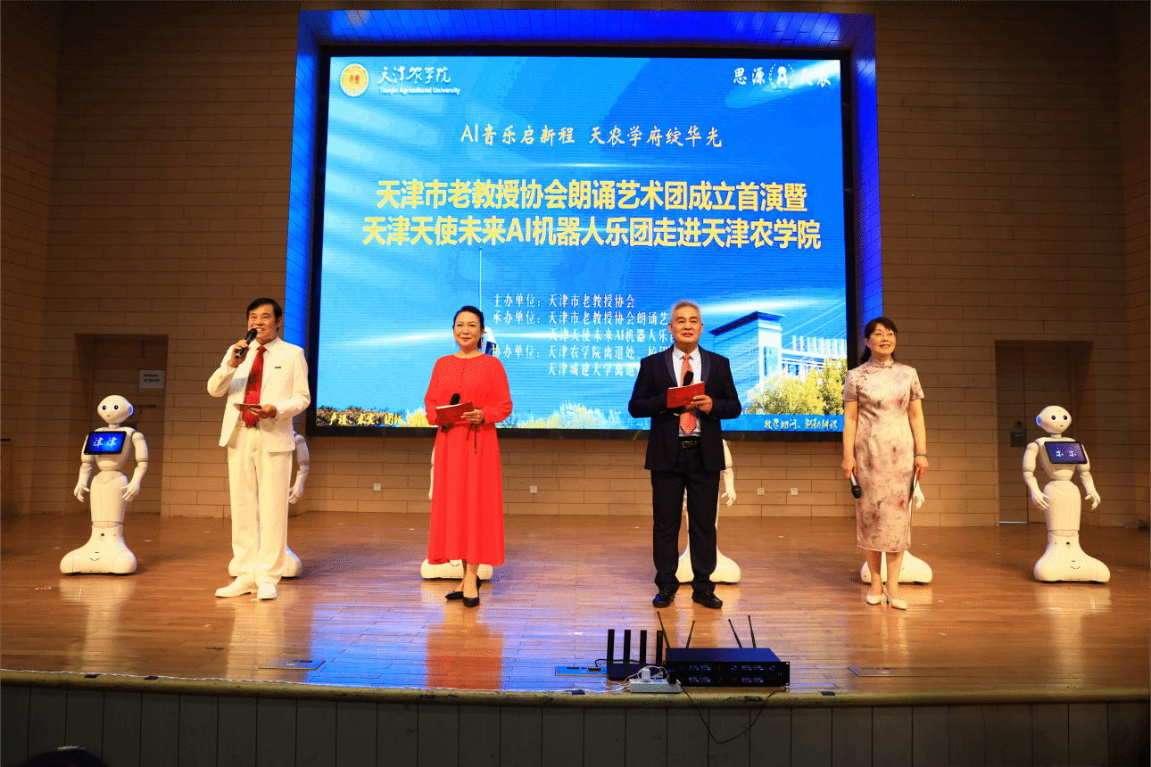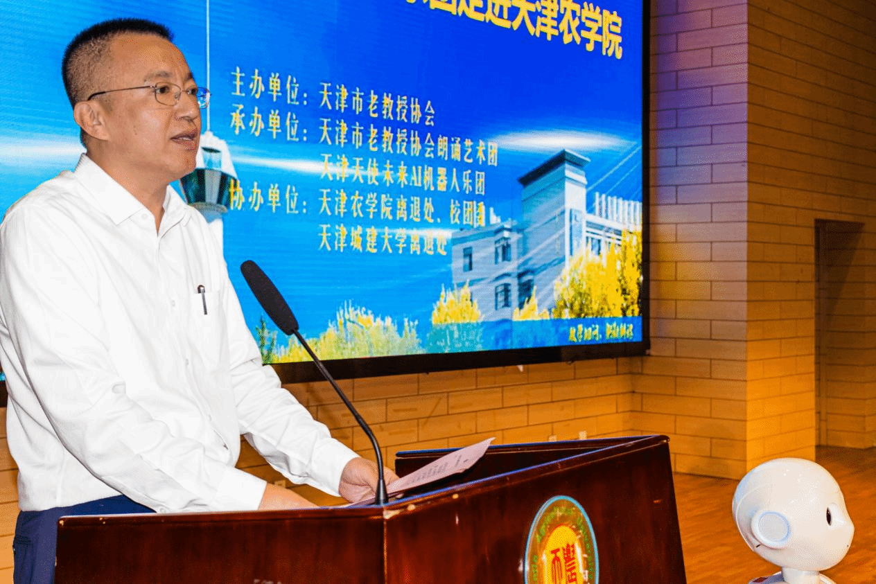 近日,由我校协办,天津市老教授协会朗诵艺术团与天津天使未来AI机器人乐团联合承办的AI音乐启新程 天农学府绽华光——天津市老教授协会朗诵艺术团成立首演暨天津天使未来AI机器人乐团走进天农活动,在我校敏学楼大礼堂举行。校党委常委、副校长张继东出席活动并致辞。