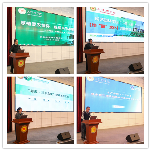 农学与资源环境学院阐述了“思源·躬勤”文化的内涵,以“思源”铸爱国爱农底色,以“躬勤”炼知行合一品格,构建全方位农科育人生态,融合耕读教育与现代农科教育,为国家战略和区域发展提供人才与智力支撑。园艺园林学院呈现了“思源·培‘园’”文化与“思源·奋进”文化的融合之道,秉持固本培元理念,于立德树人与专业培养双向发力,培养理论扎实、技艺精湛的园艺园林专业人才。动物科学与动物医学学院的分享,彰显了“思源·三牛”文化的奋进力量,以“为民服务孺子牛、创新发展拓荒牛、艰苦奋斗老黄牛”为内涵,结合学院学科特色与行业属性,既传承农耕文明中“牛”的文化基因,又精准契合畜牧养殖、公共卫生的学科使命。水产学院立足水产学科特色,展示了“思源·渔”文化独特魅力,紧扣“立德树人、文化引领、科技创新、产业振兴、国际合作”主线,形成了特色鲜明的“思源·渔”文化,丰富现代都市型渔业文化内涵。
