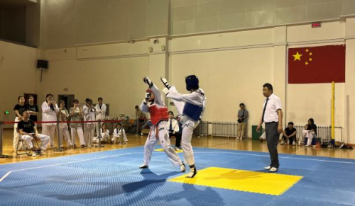 来自10个学院不同年级和专业的120多名选手参加了此次挑战赛,他们齐聚一堂,共同展现跆拳道的魅力与风采。赛场上,选手们精神抖擞,身姿矫健,每一个动作都充满力量,踢腿、出拳干净利落,展现出了高超的技艺和顽强的斗志。