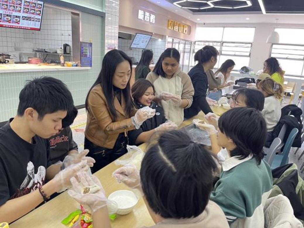为了让留学生亲身体验源远流长的中国传统文化,提高在华归属感和融入感,做好中外友谊的使者和文化的传播者,12月29日,总务处、国际交流处、动物科学与动物医学学院、食品科学与生物工程学院、计算机与信息工程学院联合举办“包福包爱情暖元旦”喜迎新年的包饺子比赛活动,来自泰国、斯里兰卡、喀麦隆等国家的50多名留学生参加了此次活动。