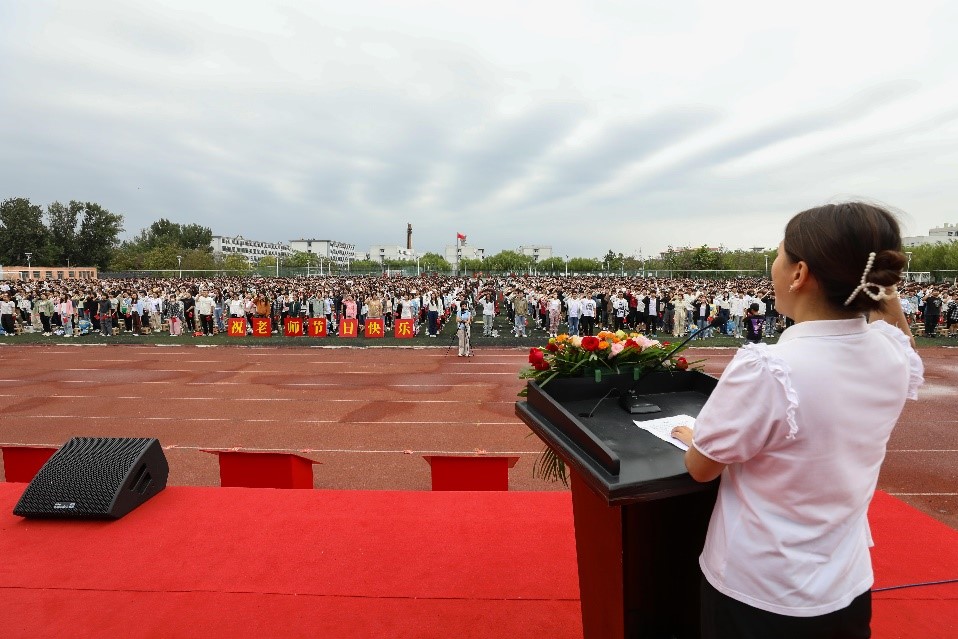 最后,现场师生共同挥舞手中的国旗用真挚的情感、最洪亮的歌声表达了对伟大祖国的热爱!向伟大祖国告白,庆祝中华人民共和国成立七十五周年,向全体老师致敬,给每一位老师送去最诚挚的节日祝福!在全场师生齐声高唱《歌唱祖国》的热烈氛围中,开学典礼圆满落幕!
