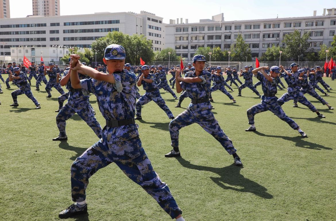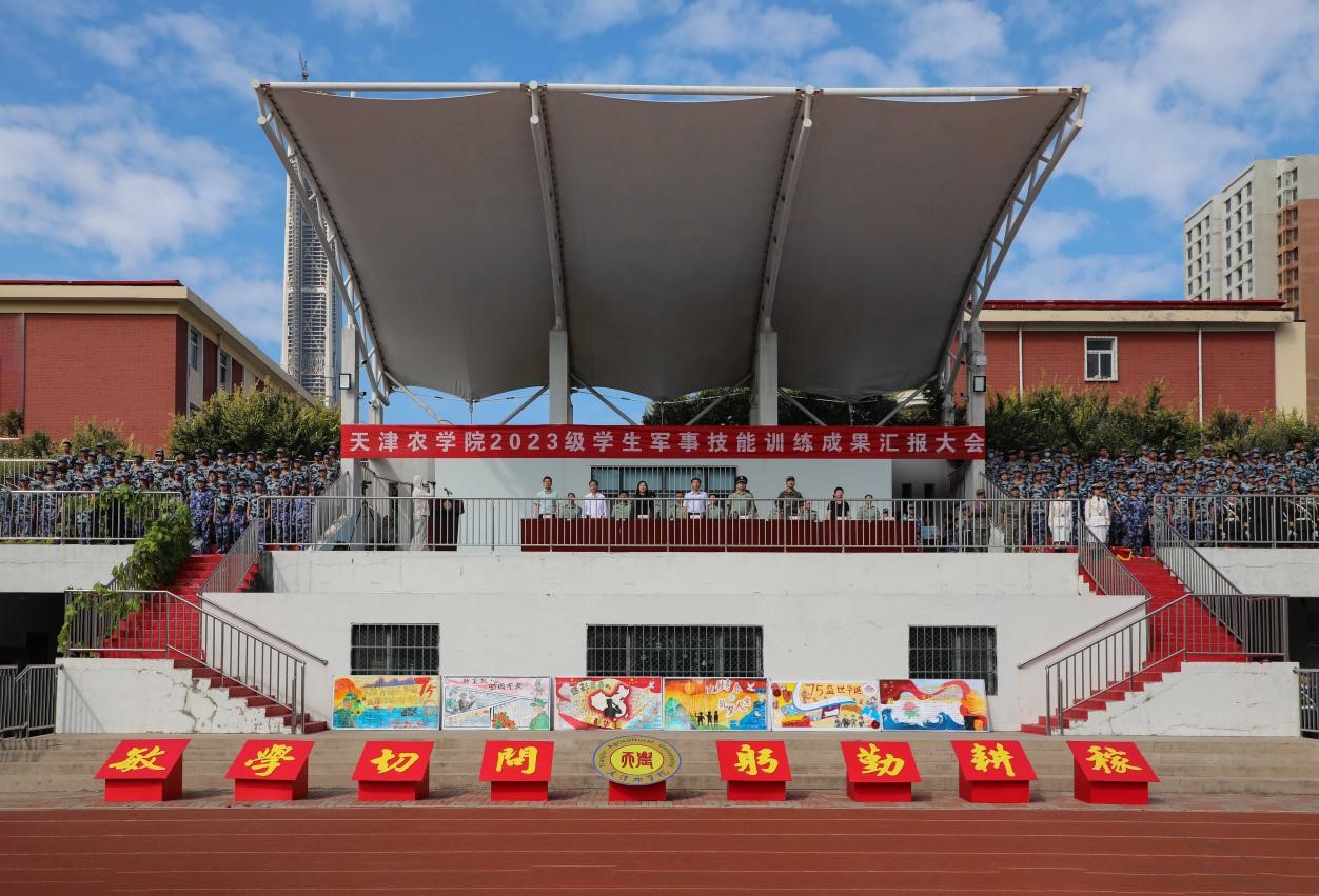 9月13日上午,我校2023级学生军训成果汇报大会在东校区运动场举行。天津市河东区人民武装部政治委员张利民大校,天津市教育委员会体美劳处四级调研员齐双一,武警天津总队执勤第一支队副中队长、军训团团长朱增强,校党委副书记宋涛出席汇报大会。