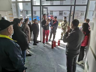 在实训演练中,消防专业人员详细讲解了灭火器的正确使用方法及操作规范。在消防专业人员的指导下,物业人员依次进行实操使用灭火器灭火演练。