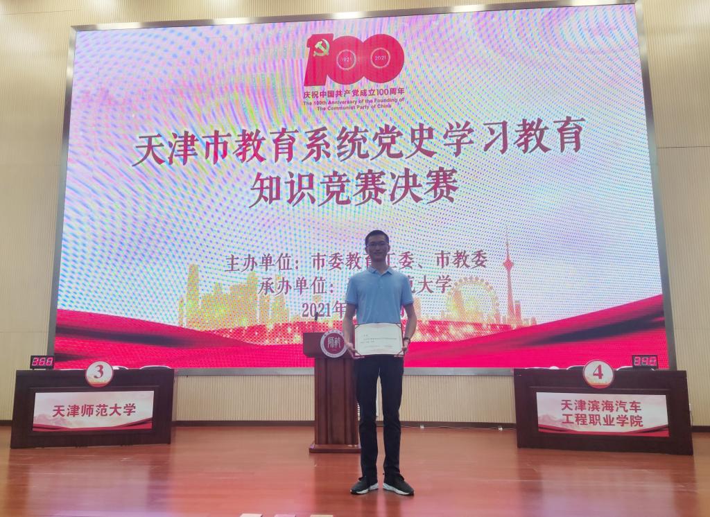 5月18日,由市教育两委主办的教育系统党史学习教育知识竞赛决赛在天津师范大学举行。我校选派的王展鹏同学荣获二等奖。