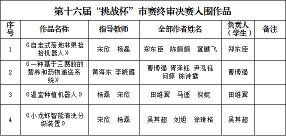 5月15日,第十六届“挑战杯”天津市大学生课外学术科技作品竞赛终审决赛暨科技成果展在天津科技大学(滨海校区)举行,天津市共157件作品进入终审决赛,其中我校有4件作品入围终审决赛。