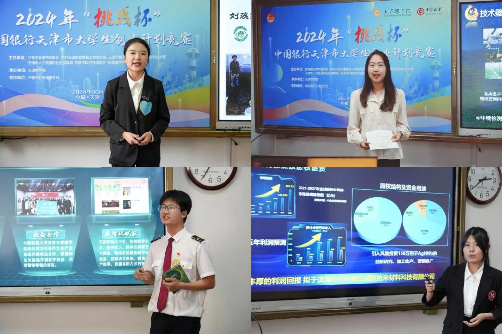 近日,由共青团天津市委员会、中共天津市委教育工作委员会、天津市教育委员会、天津市科学技术局、天津市人力资源和社会保障局、天津市科学技术协会、天津市学生联合会联合主办,我校承办的2024年“挑战杯”中国银行天津市大学生创业计划竞赛终审决赛成功举办。市赛组委会相关负责同志、市赛评委会终审决赛评审专家和各参赛高校师生参加本次活动。