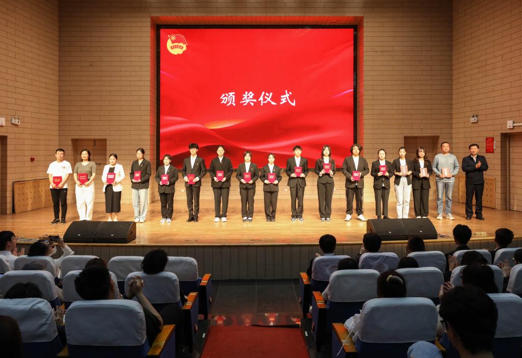 校党委副书记宋涛为校级五四红旗团委等奖项获奖集体和个人颁发荣誉证书