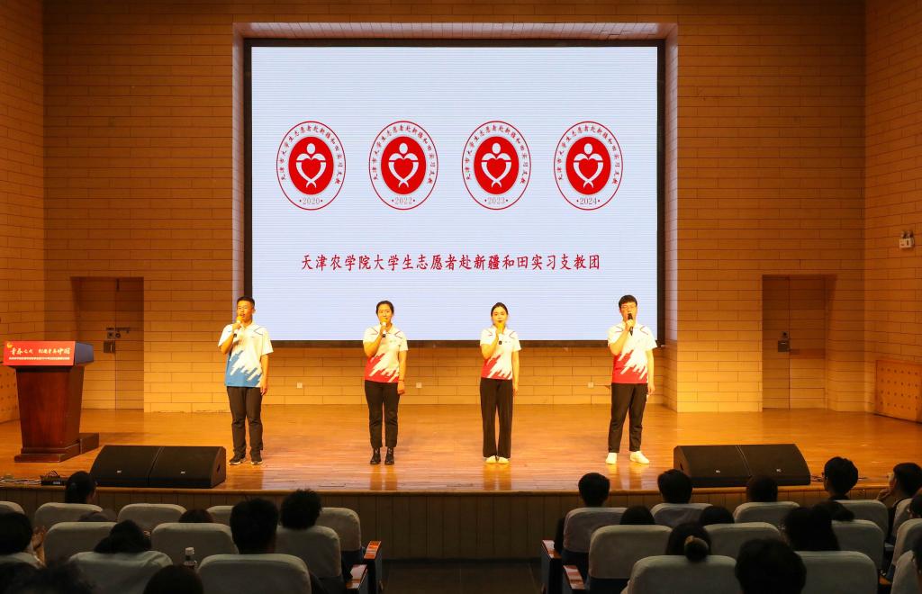 “老师,谢谢您教我画画,让我把我的妈妈画出来,长大以后我也要当一名老师。”援疆支教团代表冯迪、王凯、祖爱热•乌其昆和刘海超以《似繁星闪烁,步履不止》为题,深情讲述了天农支教充分发挥临时党团支部战斗堡垒作用,坚守课堂主阵地,助力文化润疆、智力援疆,帮助他们扣好“人生第一粒扣子”的动人事迹。