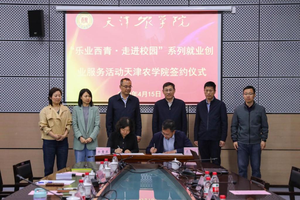 4月15日,西青区人力资源和社会保障局局长顾志昊一行来校交流座谈,双方举办了“乐业西青·走进高校”系列就业创业服务活动暨“就业红娘”进校园服务签约仪式。校党委常委、副校长张民会见了来宾。