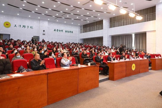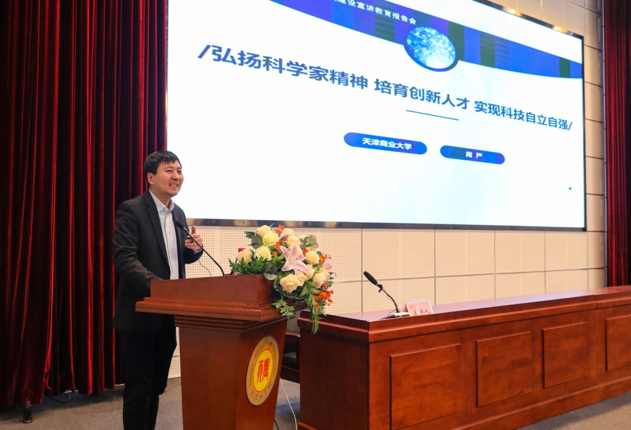 近日,由市科协、市教委、市科技局、天津社会科学院共同主办,我校与天津市科技社团创新发展促进会联合承办的2023年天津市科学道德和学风建设宣讲教育报告会在我校举行。中国科学院院士、天津大学地球系统科学学院院长刘丛强教授,市科协党组成员、一级巡视员、科技社团党委书记卢双盈,市科技局党委委员、副局长祖延辉,天津商业大学理学院副院长周严教授,天津社会科学院科研组织处副处长陈静等出席会议,市教委副主任罗延安主持会议。校党委副书记、校长金危危出席会议并致辞。