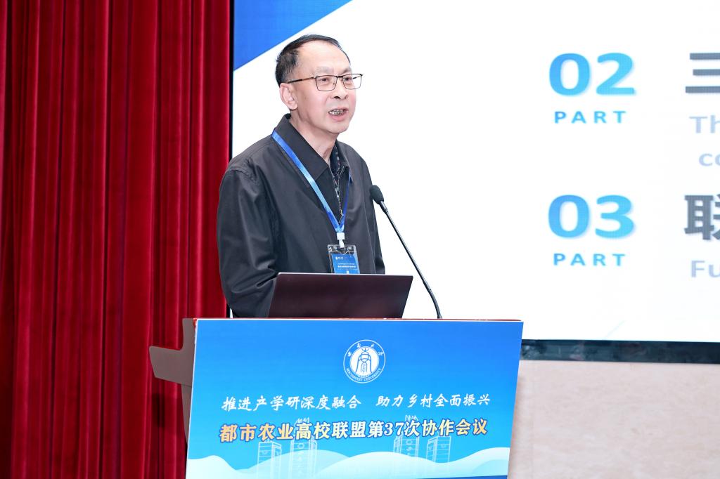 王延文以“三融五协同、多维度助力乡村振兴实践与思考”为题,阐述了我校紧密对接区域现代都市型农业产业发展需求,持续推进改革创新,加快内涵式发展,围绕产业链布局学科链、人才链、创新链和服务链:学科链植根产业链,培养乡村振兴急需的建设者;创新链赋能产业链,提供乡村振兴科技创新动力源;人才链引领产业链,供给乡村振兴智力资源;服务链加持产业链,助力乡村振兴提质增效,并以“产教融合、科教融汇、继教融通”促进五链协同,从人才、培训、技术、服务、规划、组织、制度、信息等多维度服务乡村振兴国家战略需求,努力成为乡村振兴建设的输送站、科技创新的支撑点和优秀人才的聚集地,以自身的高质量发展服务乡村振兴高质量发展。