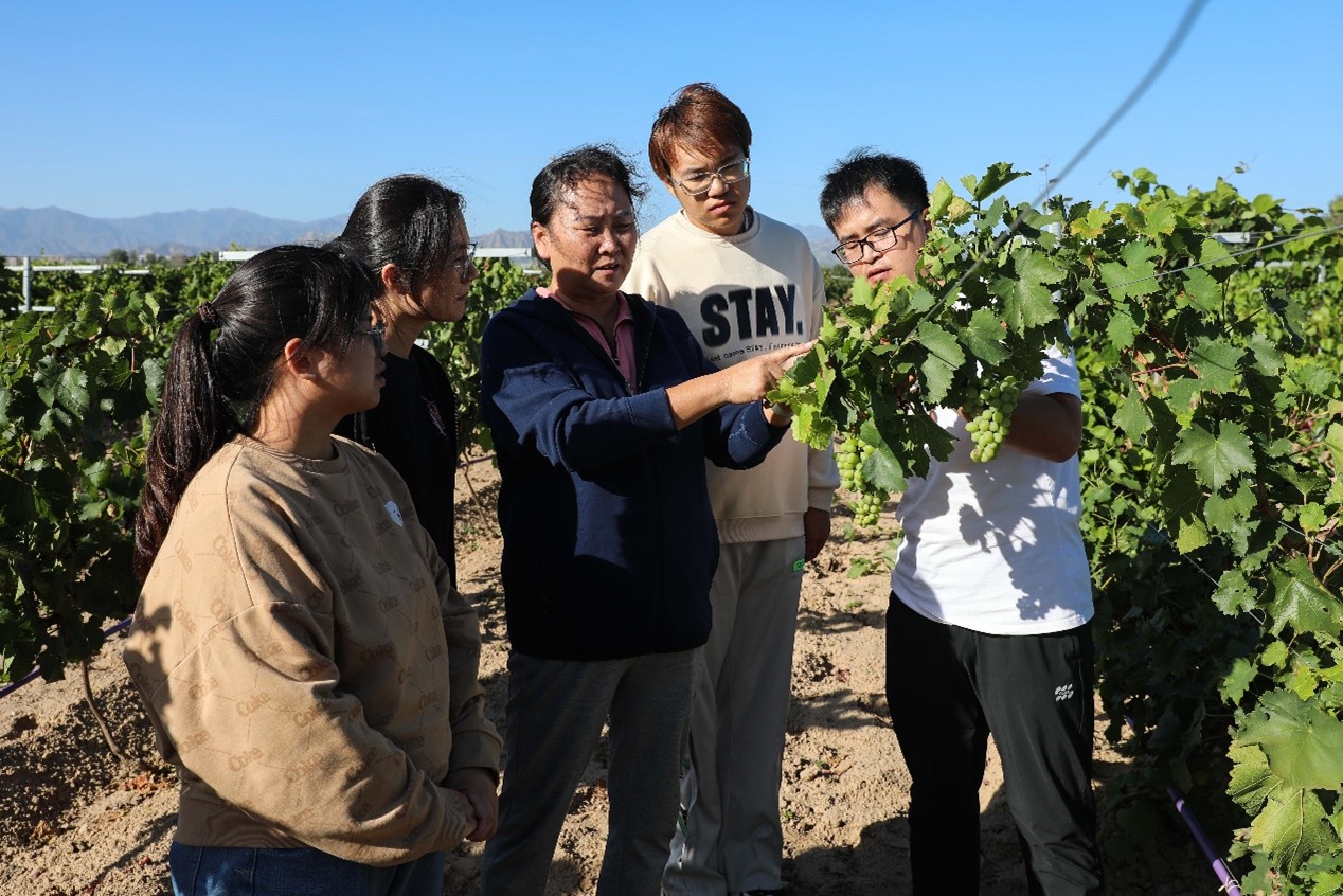 坐落在河北省怀来县城投农业公司的葡乐生态园是田淑芬研究员负责的研究生创新实践基地,也是河北省葡萄产业研究院所在地,田淑芬担任研究院副院长。在该基地的走访慰问中,宋涛为田淑芬研究员以及正在实习的研究生送上慰问品,在田间地头、葡萄架下、实验室中、实习场地与师生亲切交谈,了解他们的工作生活、身体健康等情况,悉心听取他们对工会工作、师生思想政治工作、就业工作的意见建议,并向田淑芬研究员在乡村振兴和学校事业发展等各项工作中作出的贡献表示诚挚的感谢。