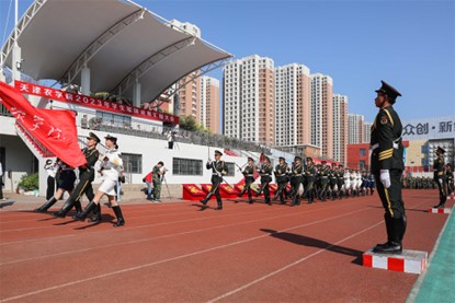 军训成果汇报大会在庄严的升国旗仪式中拉开帷幕。