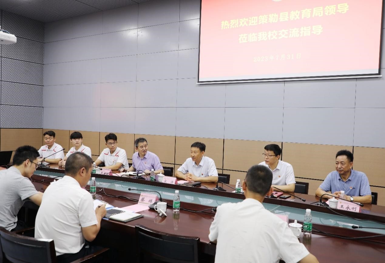 7月31日,策勒县教育局教工委副书记、教育局党组书记蔡炼一行3人来我校回访慰问。校党委副书记宋涛会见到访来宾并参加相关活动。