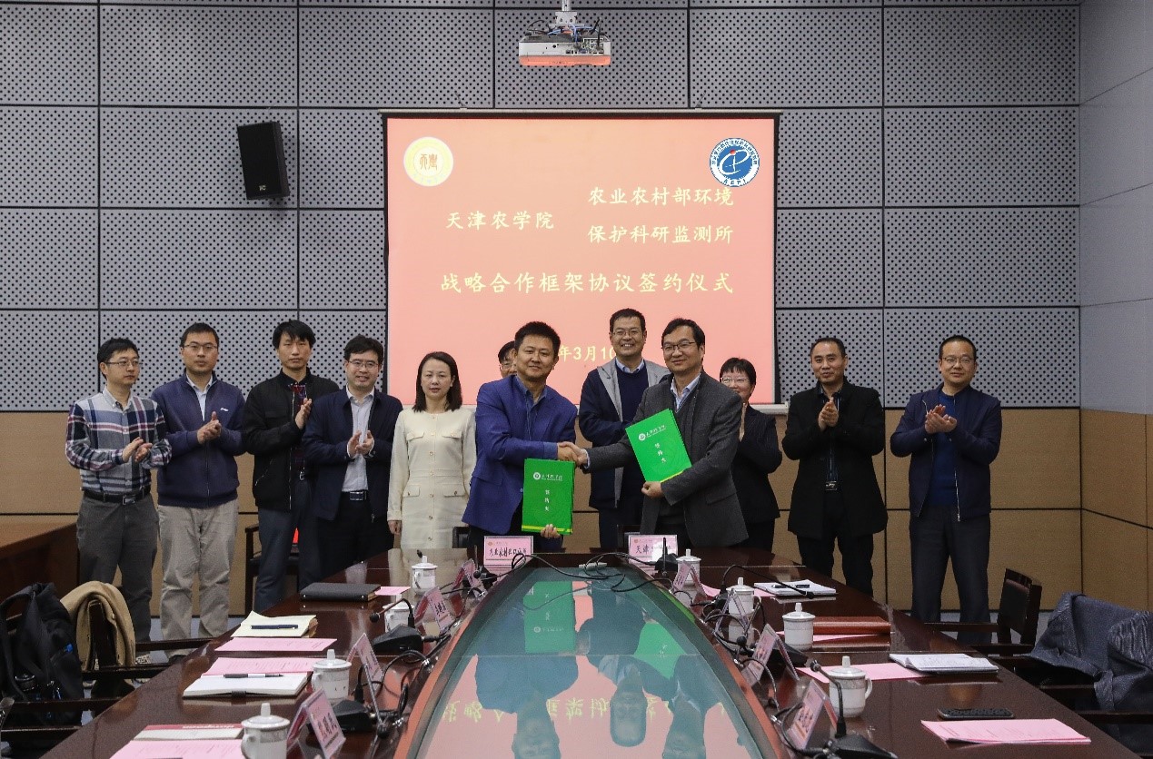 签约仪式上,金危危首先感谢农业农村部环境保护科研监测所长期以来对我校教学、科研、成果转化等各项工作的大力支持,并从科技创新、人才队伍建设、研究生培养、服务乡村振兴等方面介绍了学校的基本情况。他希望双方以此次战略合作协议的签署为契机,进一步加强科学研究、人才培养、学术交流、科研实习基地建设等方面的合作与交流,为推动天津农业农村现代化建设和乡村振兴作出新的更大贡献。