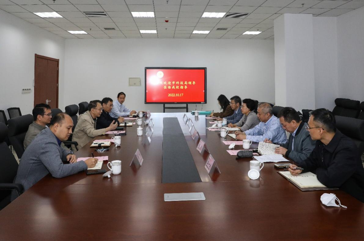 10月17日,天津市科技局副局长(主持行政日常工作)梅志红,市科技局党委委员、副局长段志强一行来我校调研并座谈交流。校党委书记王延文,校党委常委、副校长(主持工作)金危危,校党委常委、副校长张民出席座谈会。