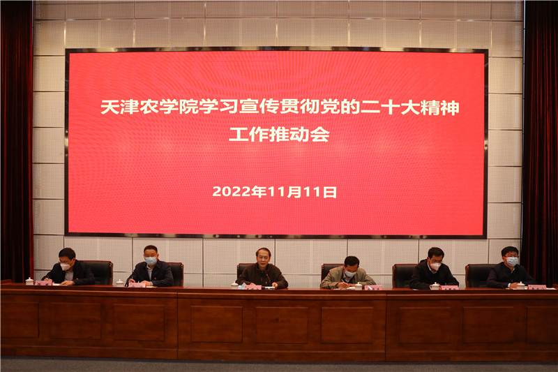 王延文强调,学习宣传贯彻党的二十大精神是当前和今后一个时期的首要政治任务。要把全校广大党员干部和师生员工的思想和行动统一到党的二十大精神上来,把智慧和力量凝聚到落实党的二十大确定的各项任务上来,持续深入学习宣传贯彻落实党的二十大精神。一是深刻领会党的二十大在中华民族伟大复兴历史进程中的重大现实意义和深远历史意义。二是深刻理解大会的主题,深刻领悟百年大党牢记初心使命、推进复兴伟业、引领时代发展的鲜明宣示。三是牢牢把握过去5年工作和新时代10年伟大变革的重大意义,深刻认识习近平总书记率领我们创造的历史性成就、历史性变革、历史性胜利。四是牢牢把握习近平新时代中国特色社会主义思想的世界观和方法论,切实在学懂弄通做实上下功夫。五是牢牢把握以中国式现代化推进中华民族伟大复兴的使命任务,深刻理解全面建设社会主义现代化国家的战略安排、目标任务和重大原则。六是深入学习领会未来一个时期党和国家事业发展的战略部署,在落实科教兴国战略、全面推进乡村振兴等重大任务中贡献天农力量。七是牢牢把握以伟大自我革命引领伟大社会革命的重要要求,以“两个永远在路上”的坚韧执着推动全面从严治党向纵深发展。八是牢牢把握团结奋斗的时代要求,形成事业发展的强大合力。