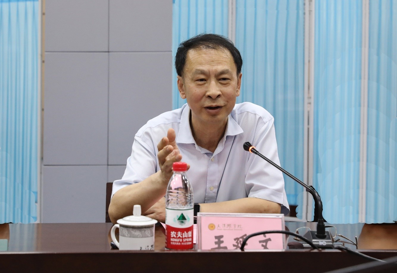 王延文首先对贾广东一行莅临表示热烈欢迎,对中国农业科学院研究生院长期以来对我校的支持表示衷心感谢,并对我校的事业发展以及在科教融合、服务乡村振兴和京津冀协同发展等方面的思路和举措进行了介绍。他希望以此次交流为契机,进一步推动双方在课题申报、人才培养、资源共享、学术交流等方面达成更多的合作意向,通过深化合作结出更多的果实。