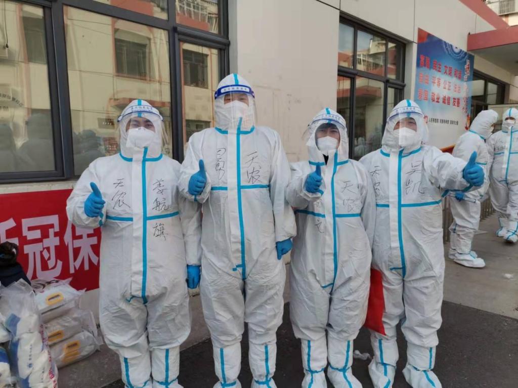 牢记使命,躬身笃行。同志们本次下沉社区主要负责小区日常消杀、上门运送物资服务、防控宣传、应急处置、心理疏导等工作。作为下沉津南区疫情防控工作组临时党支部书记、组长,田勇同志勇担重任,积极统筹谋划,组织队员们学习中央及市委防控工作精神、学习防护知识、建章立制、协调物资。刚进驻封控区时,由于组员们火速集结,生活用品准备不到位,田勇同志积极与学校、当地疫情防控领导小组协商沟通,为大家运来了一些必要物资。田勇同志高标准严要求,为了更好更细更科学开展工作,主持拟定了详细的工作流程,提高工作效率、确保同志们安全。同时给队伍也立下了不成文的规矩,每次集合出发和归队返回都要列队行进,保持形象良好。田勇说,在这里,我们代表了天农、代表教育系统工作者、代表了千万党员干部的形象,不仅要把工作干好,还要干得漂亮,容不得一丝马虎。