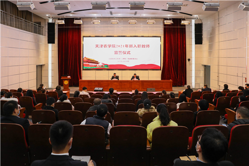在党委教师工作部部长刘铁玲的领誓下,新入职教师面对国旗、校旗庄严宣誓。国务院政府特殊津贴专家、园艺园林学院田淑芬研究员作为专家代表发言,经济管理学院杨欣教授作为新入职教师代表发言。