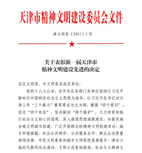 近日,天津市精神文明建设委员会公布了《关于表彰新一届天津市精神文明建设先进的决定》,我校荣获2018-2020年度天津市文明校园荣誉称号,这是我校办学治校进程中的又一个历史性突破。