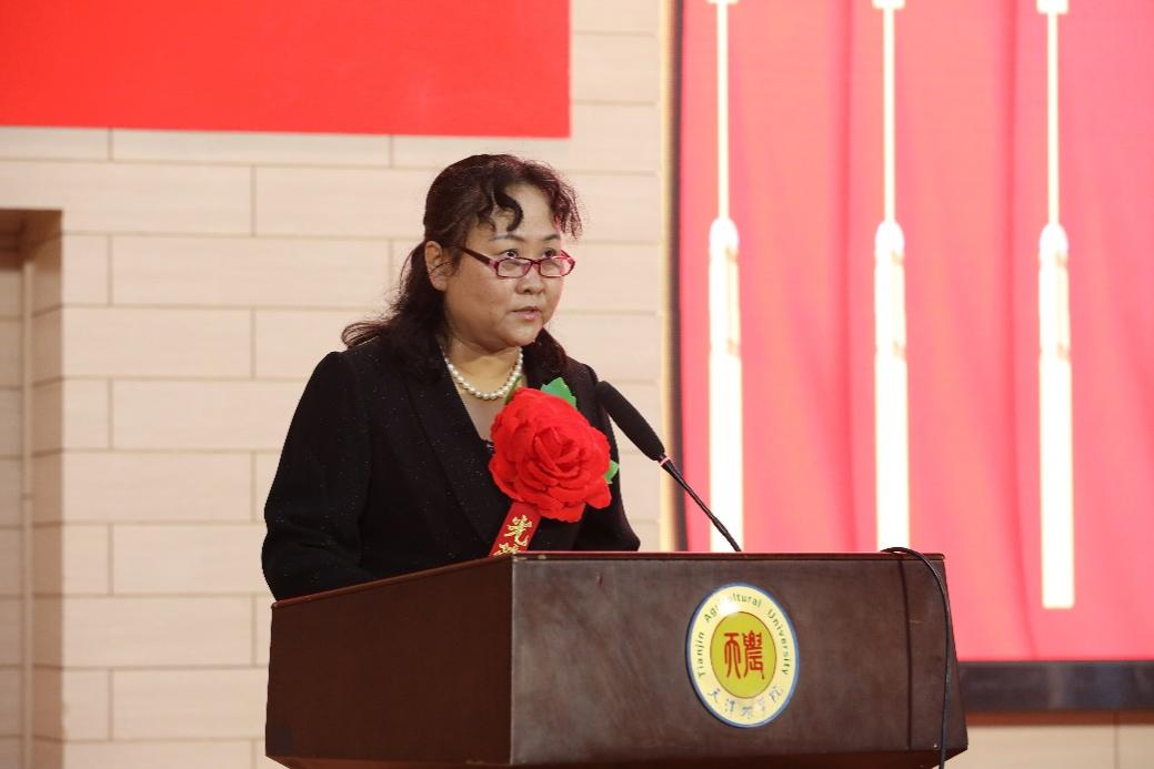 市级优秀共产党员园艺园林学院田淑芬研究员代表优秀共产党员发言。她结合自己从事农业科研工作33年的奋斗历程和收获感悟,与大家分享了自己作为一名共产党员对初心使命的坚守,对党的热爱、对农业的热爱,专注科研,把论文写在大地上;坚守立德树人的根本任务,言传身教引导学生们学农、爱农、做新时代的新农人。