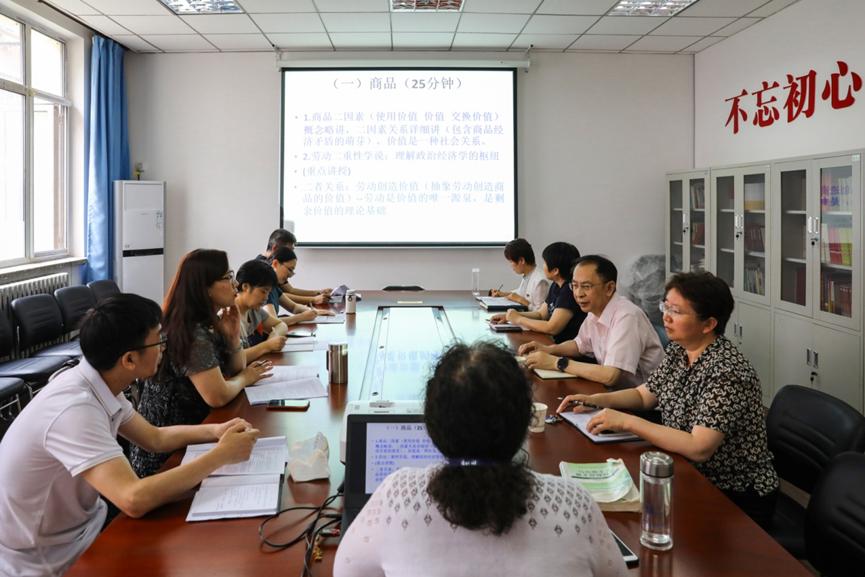 为了更好地提高教学质量和教学效果,马克思主义学院进一步完善了集体备课制度,制定了每学期的教研活动计划并定期开展教学研讨。本次教研活动,“原理课”教研室研讨了“劳动价值论”的讲授情况,其他各个教研室围绕“党史”融入思政课展开,重点研讨了“党史”融入思政课的主线、重点和方法,并选取教师代表进行了个案展示。