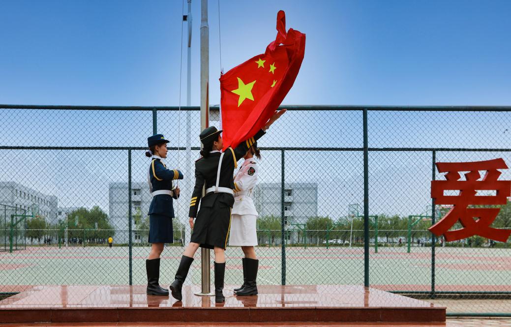 在庄严雄壮的国歌声中,鲜艳夺目的五星红旗冉冉升起,我校第十八届春季田径运动会拉开序幕。