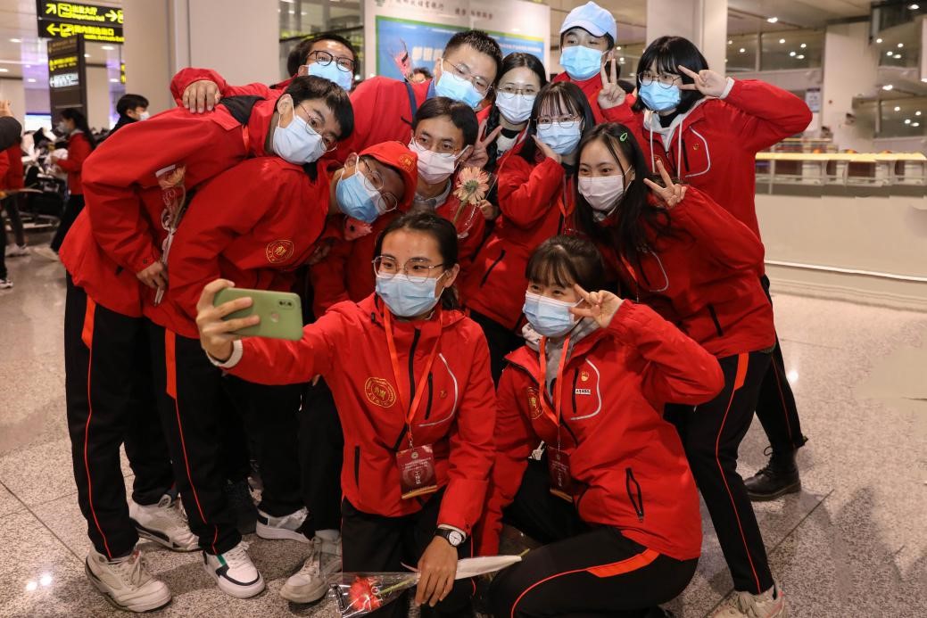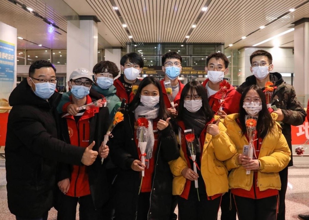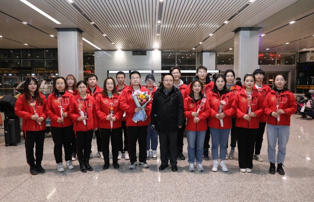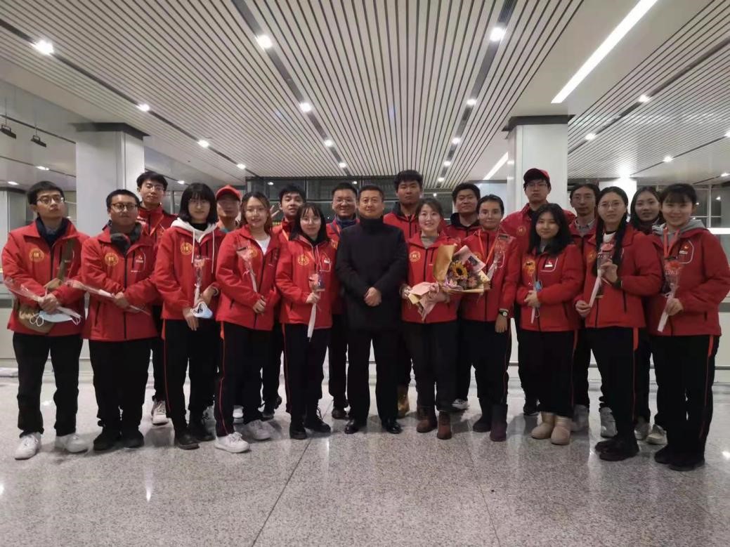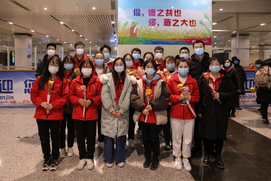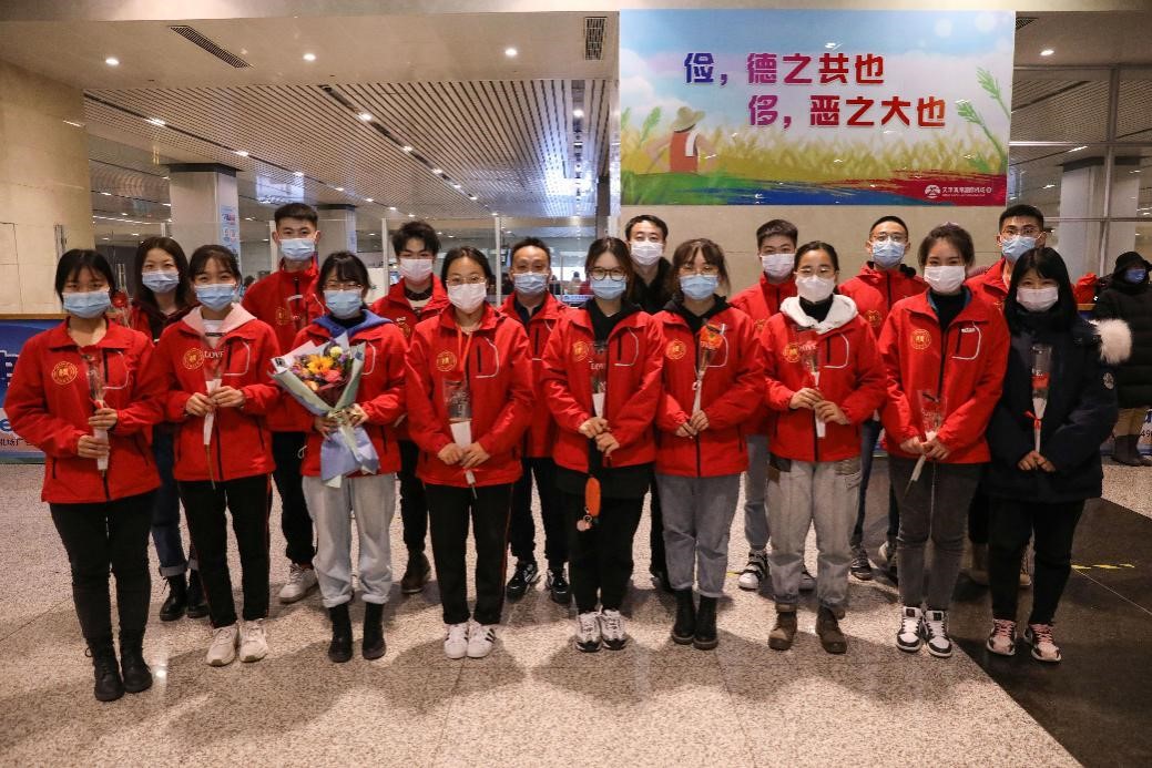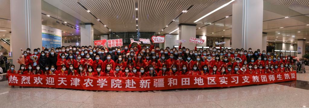 2020年12月30日晚,我校赴新疆和田地区实习支教的140名师生带着津和两地人民的深情厚谊,圆满完成各项任务平安抵达天津。按照学校党委安排,校党委副书记宋涛带队前往天津滨海国际机场迎接载誉而归的实习支教团师生,党办、组织部、宣传部、学工部、研工部、校团委及各学院的负责同志一同到机场迎接。
