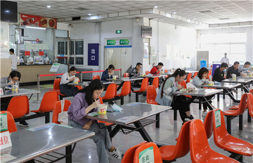 学生在食堂单桌同向用餐(文字:宣传部;摄影:陈卫东)