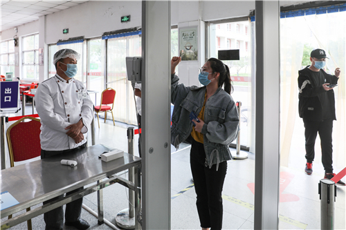 学生进入食堂前主动进行体温检测