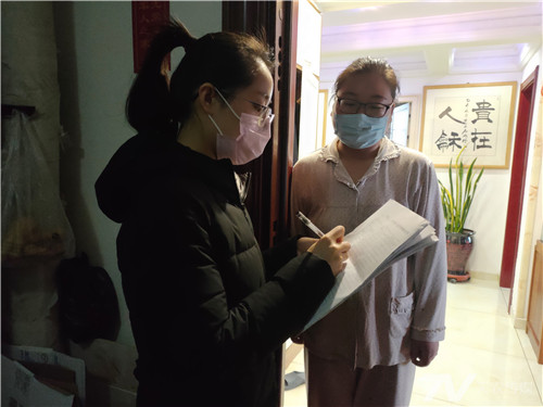 她主要负责社区的疫情排查工作。在做好自身防护的同时,她每天对小区逐户入户走访,询问每户家中近期常住人口信息、是否有发热、与武汉返乡人员接触史等情况,并进行登记;家中无人的,她利用午休时间进行电话回访,了解近况。