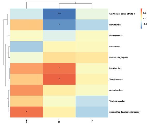 图4 樱桃谷肉鸭生长性能与肠道菌群的Spearman相关性分析