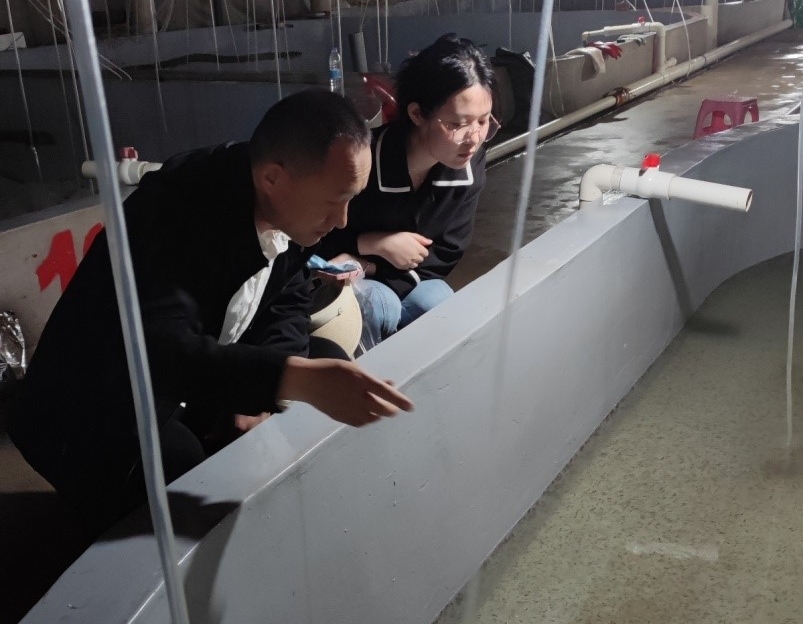随后,双方赴我校产学研联合体、松江鲈驯养繁育示范基地——天津市晟淼水产养殖有限公司,参观了松江鲈繁育车间、工厂化循环水养殖车间等,对松江鲈生长发育情况进行测量分析;针对松江鲈受精卵孵化率低问题进行探讨;对松江鲈苗种繁育过程中生物饵料的培养、饵料的转换、育苗池清理、水质调控等技术进行指导,分析了后期松江鲈养殖注意事项,并将采集完的实验样品带回学校进行进一步分析研究。