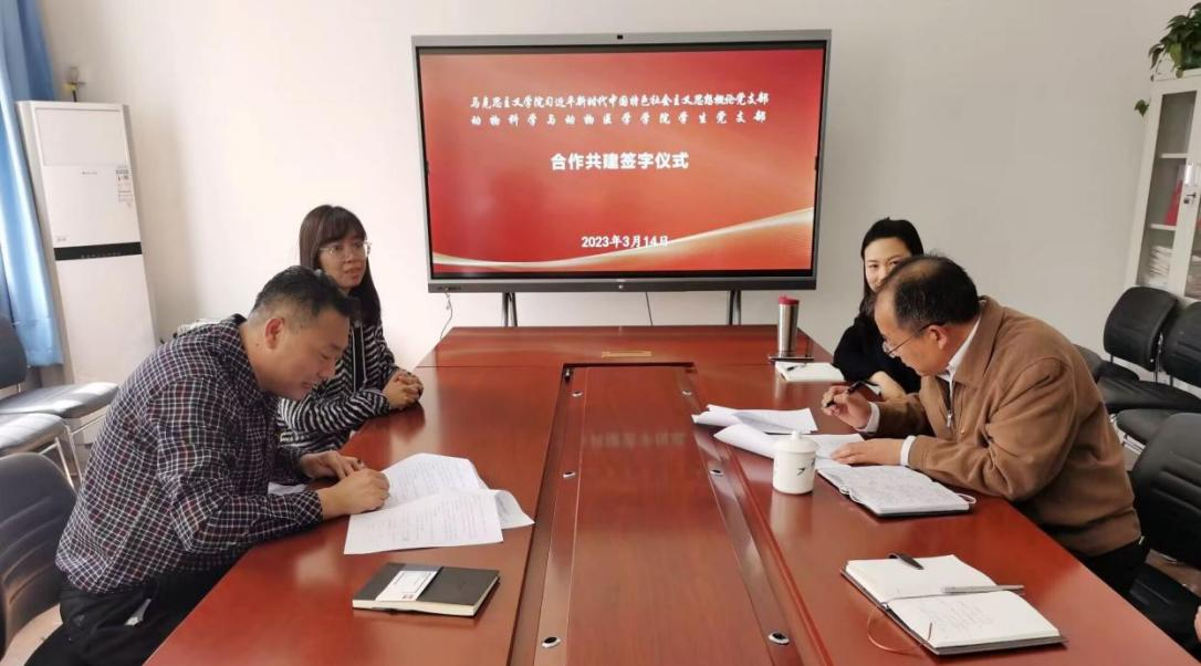 3月14日,马克思主义学院习近平新时代中国特色社会主义思想概论研究室党支部与动物科学与动物医学学院动科系学生党支部在崇文楼党员活动室举行了支部结对共建签约仪式并进行了座谈。