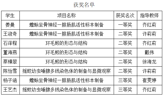 2022年天津市大学生生命科学竞赛生命科学基本实验技能竞赛我校学生获奖名单
