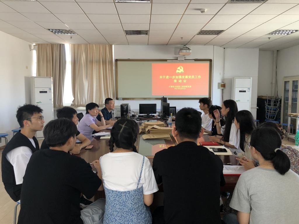 6月4日,计算机与信息工程学院党委召开关于进一步加强发展党员工作推动会。会议由学院党委书记何玉香主持。