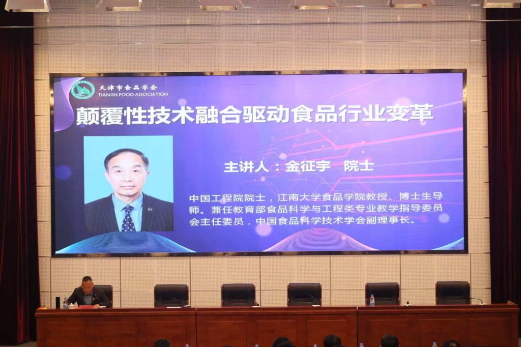 会上,中国工程院院士、江南大学食品学院教授、博士生导师、教育部食品科学与工程类专业教学指导委员会主任委员、中国食品科学技术学会副理事长金征宇院士作了题为《颠覆性技术融合驱动食品行业变革》的主题报告。我校副校长、天津市食品学会副理事长张民教授和天津科技大学食品科学与工程学院党委书记、天津市食品学会副理事长杜欣军教授分别作了题为《不同偏好程度气味对免疫和肠道菌群的影响》和《食药同源食材的功效研究与产品开发》的专题报告。天津利达粮油有限公司党委副书记、总经理韩旭,天津海河乳品有限公司党委书记、董事长邹旸,天津市利民调料有限公司总经理李建强,天津桂发祥十八街麻花食品股份有限公司副总经理、天津市食品学会副理事长赵铮,天津市桂顺斋食品有限公司总经理、天津市食品学会常务理事张玉,地龍力生物工程(天津)有限公司董事长、天津市食品学会常务理事贾立明等六位企业负责人也相继进行了专题报告。报告内容精彩纷呈,为与会者呈现了一场高层次、高水平的学术盛宴。