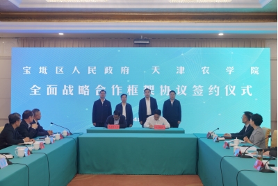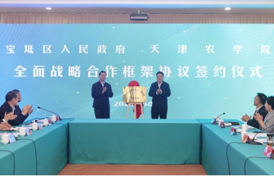 会上,双方观看了宝坻区和我校的专题宣传片,共同签署威客电竞与宝坻区人民政府全面战略合作框架协议,与会领导为我校乡村振兴研究院宝坻分院揭牌。我校科技处负责同志从研究背景、合作基础等四个方面解读了我校与宝坻区人民政府全面战略合作框架协议。我校组织部、农学与资源环境学院负责同志和天津农垦渤海农业集团有限公司、天津市清水思源农作物种植专业合作社等有关企业代表分别发言。
