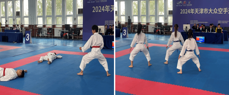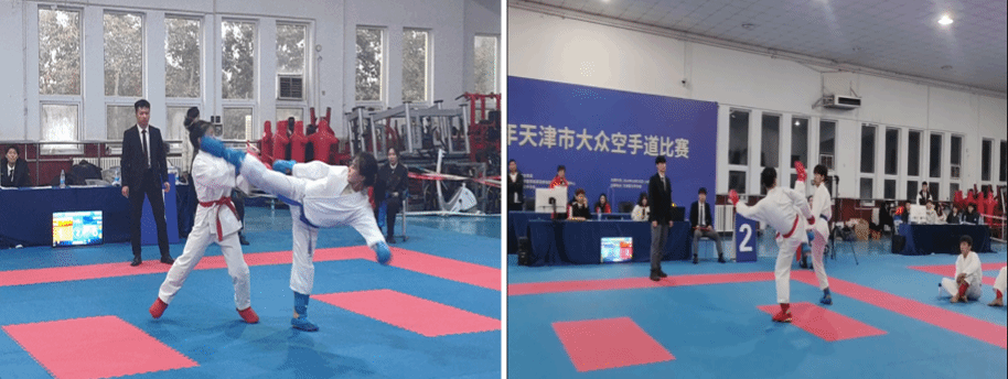 近日,天津市第二届空手道超级联赛(第二站)暨天津市大众空手道比赛大学生组在天津市西青区精武镇霍元甲文武学校举行。由体育教学部李学刚、张秀丽两位老师带领的我校空手道队在团体型、个人型和个人组手、团体组手项目中展开激烈角逐,最终以优异成绩名列团体总分第一名,斩获17枚金牌、10枚银牌、5枚铜牌,共获得前八名奖项38项,并荣获体育道德风尚奖。