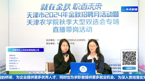 招聘活动现场,学校专门设置了就业赋能专区,涵盖经济管理学院“民本”就业育人工作坊就业指导、中国教育在线AI简历指导和AI面试指导、天津领誉管理咨询有限公司AI岗位匹配和天津新东方前途出国留学咨询服务等,一对一为毕业生提供有温度、精准化的就业服务。就业指导老师与求职者面对面交流,针对不同情况给出提升简历质量、增强面试技巧、提高人岗匹配度等实用建议,为毕业生就业暖心护航。现场开设线上直播间,同步进行直播带岗活动。天津市亿人科技发展有限公司、天津艾尔森生物科技有限公司和天津天芯微系统集成研究院有限公司等6家企业代表走进直播间,通过中天人力直播间等线上平台推介了近百个岗位的招聘信息,与网友实时互动,解答疑问。直播期间,在线观看人数突破1.36万人次。