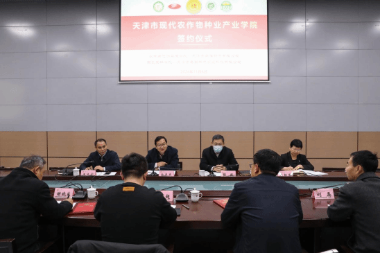 11月6日,我校与天津市南澳种子有限公司、天津市桑田梓地农业科技有限公司举行了天津市现代农作物种业产业学院签约仪式。校党委副书记、校长金危危,校党委常委、副校长张民出席仪式并讲话。